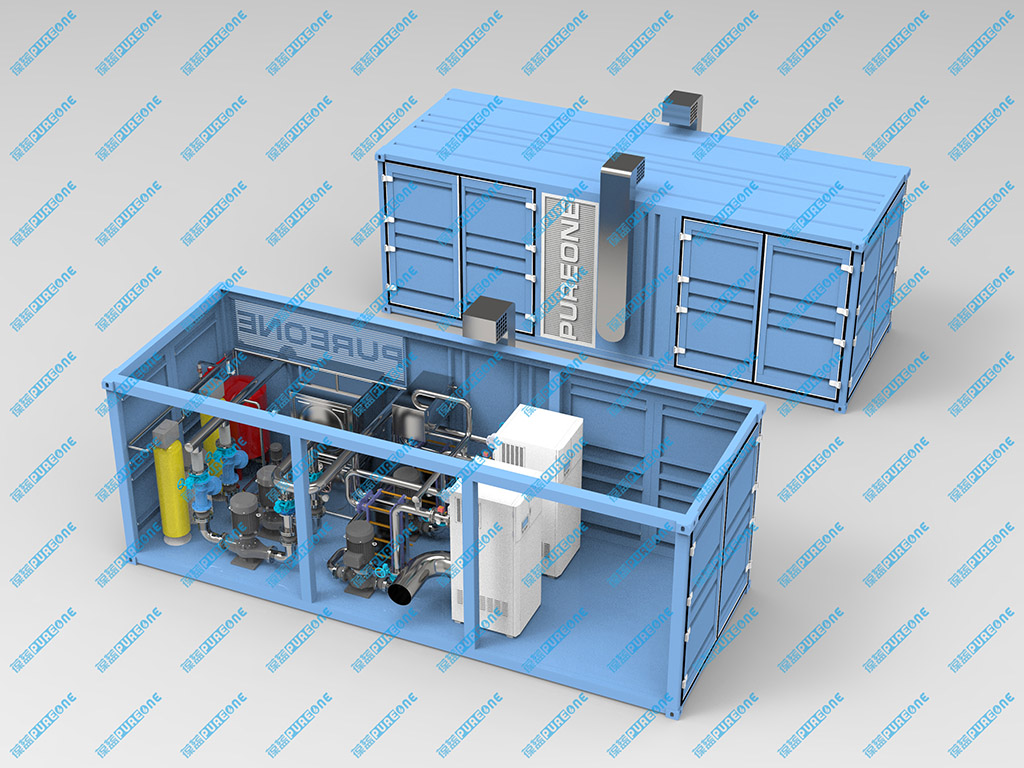 集裝箱內集成鍋爐、控制及輔機,結合葆藍鍋爐占地小、噪音低等優點,可以放置室外,樓頂等地。